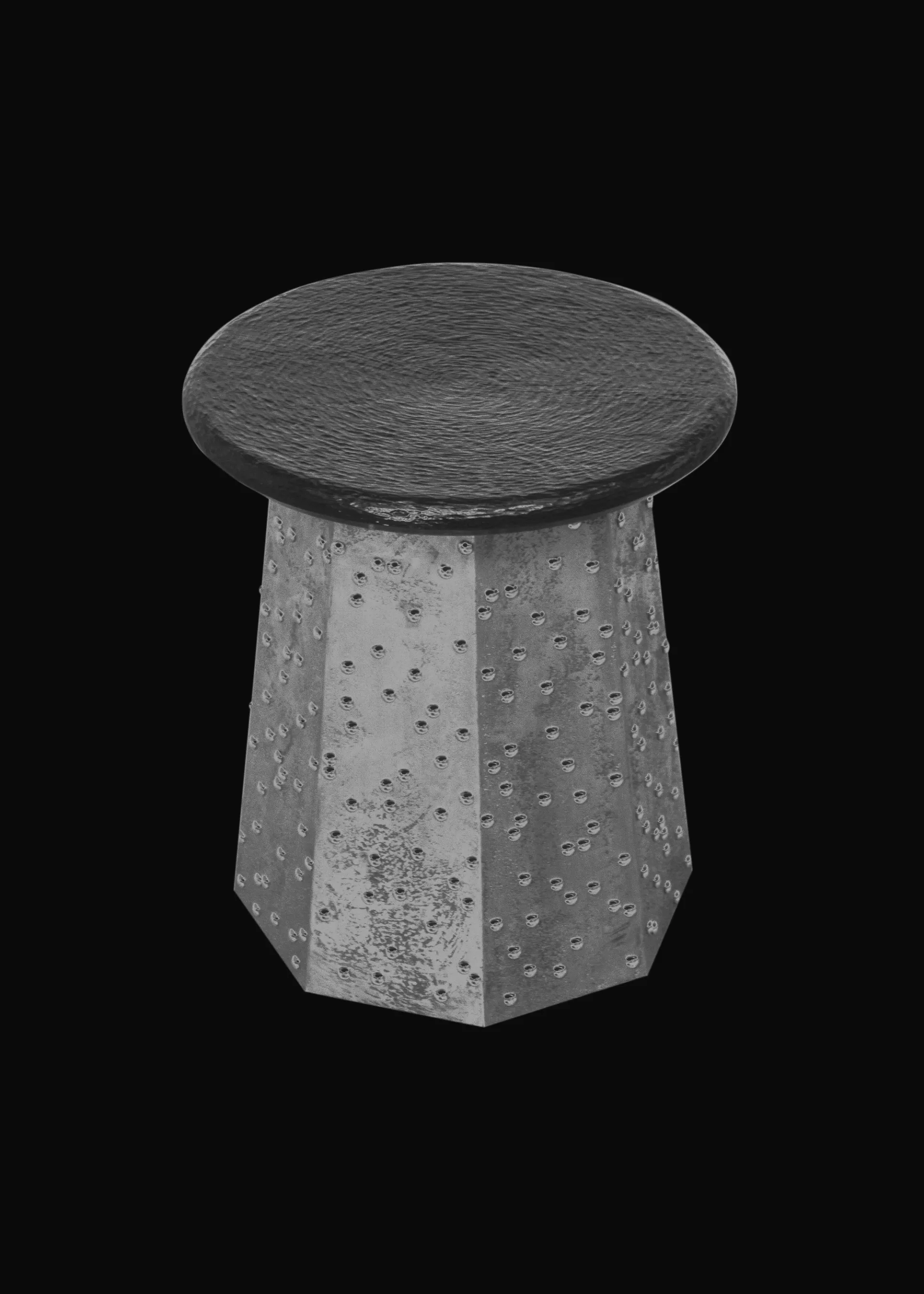 Oak and beech wood, nails, cold metallisation, H. 450x400x400 mm, 2023