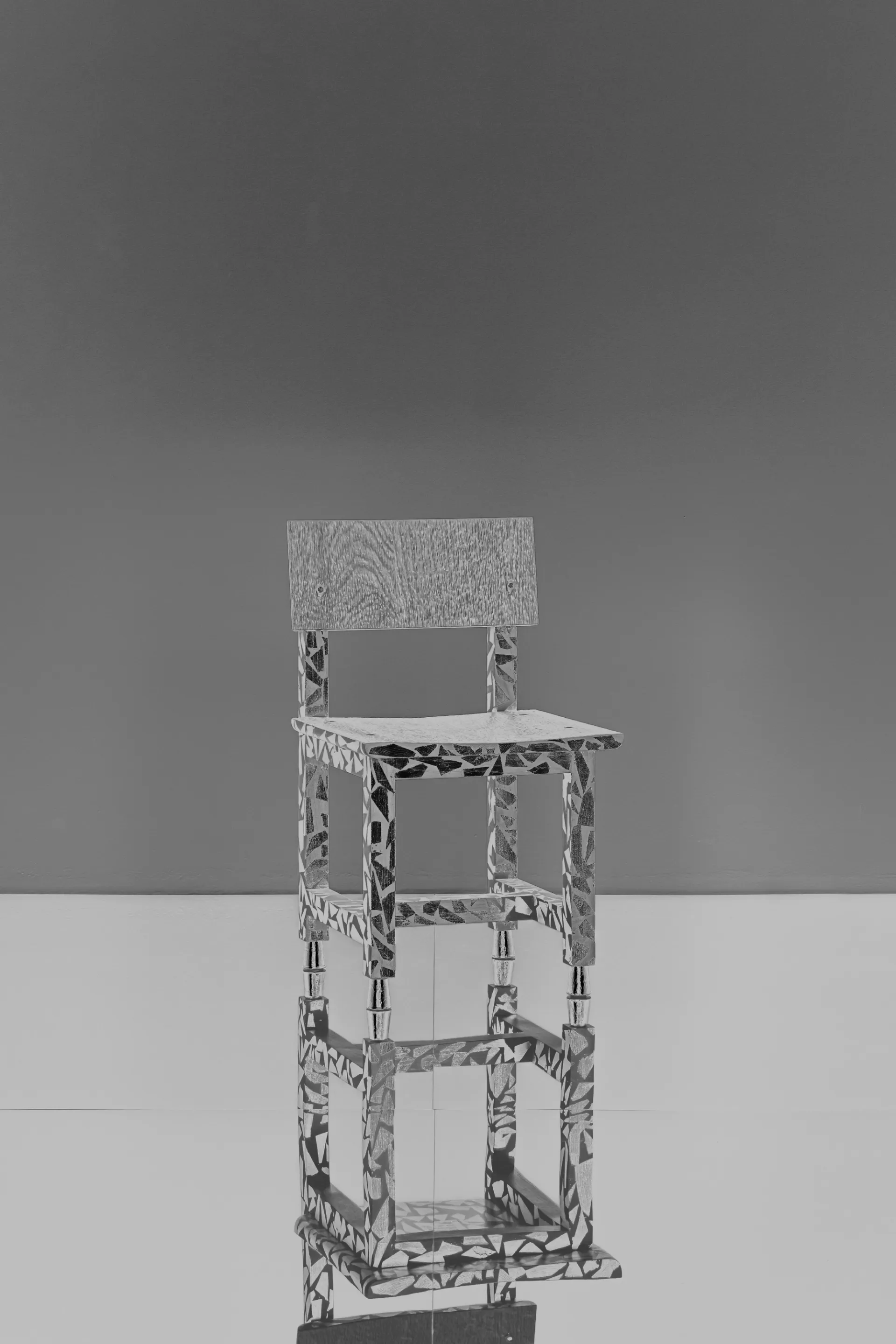 Oak wood, 10cc white gold, sterling silver, resin epoxy, H. 810x470x495 mm, 2024