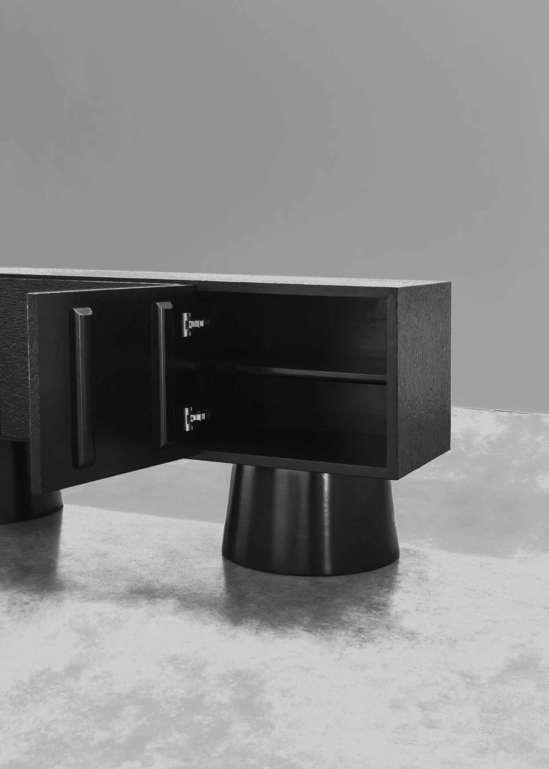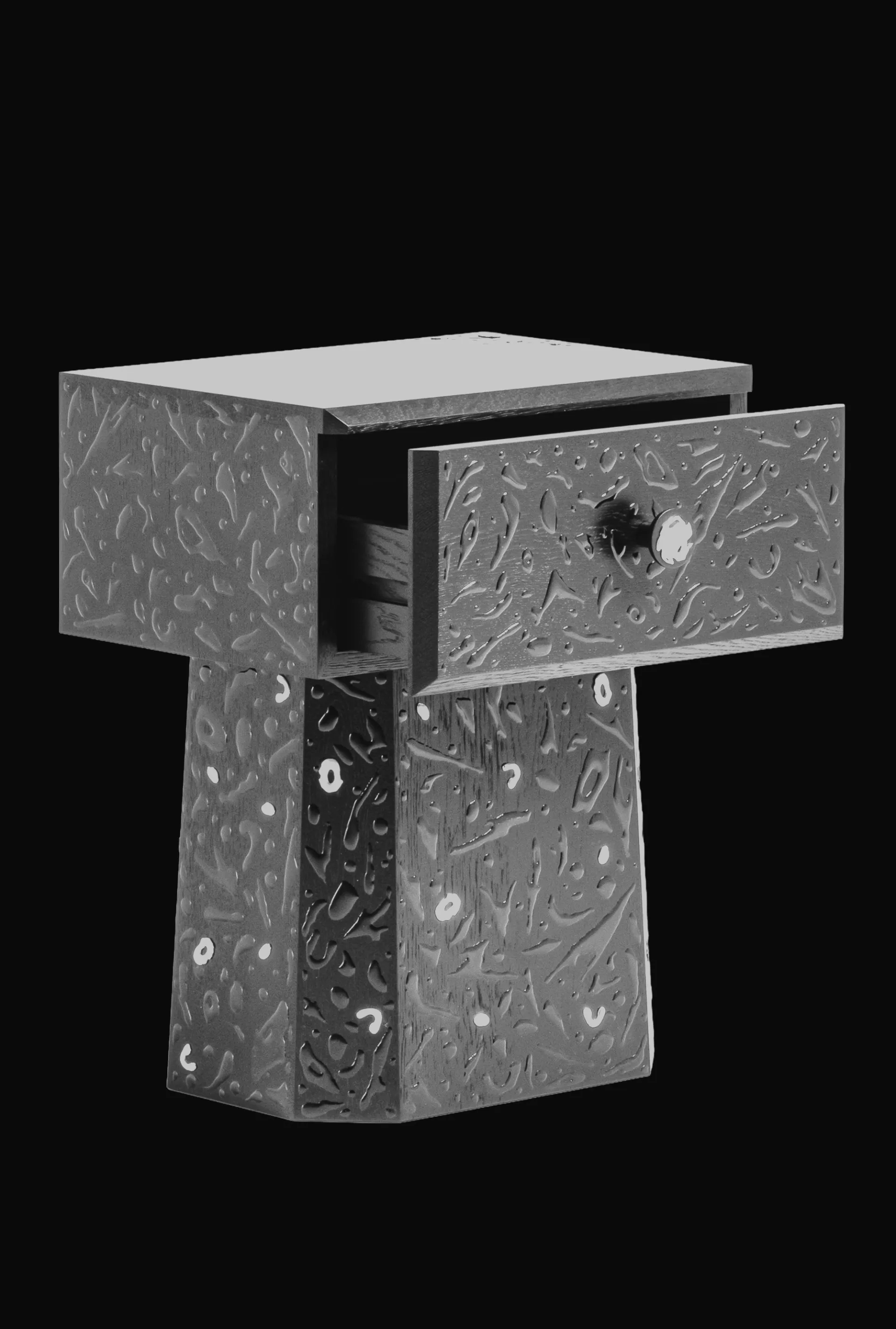Oak and beech wood tinted black, nails, H. 450x400x400 mm, 2023