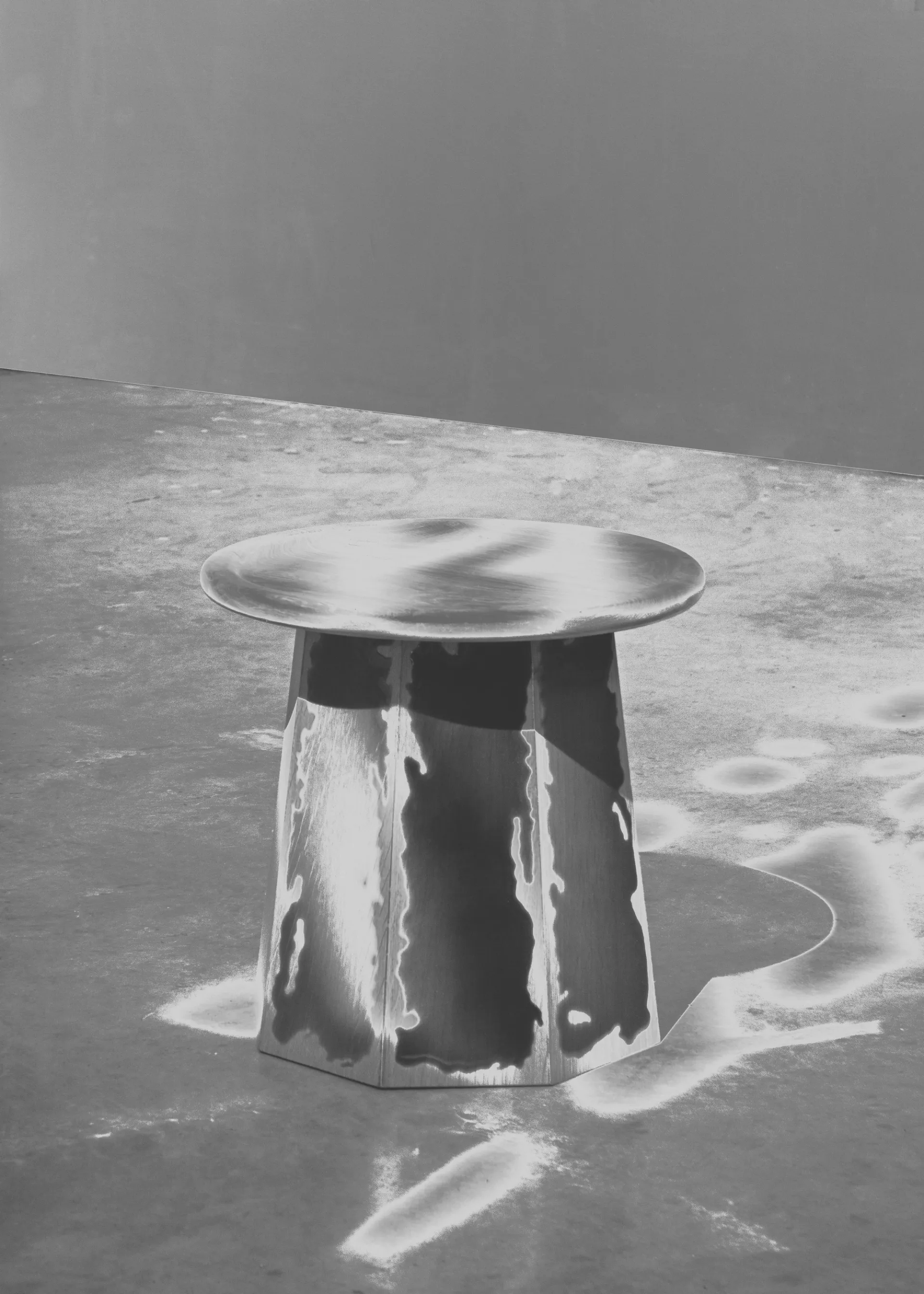 Beech wood, cold metallisation, glazed earthenware, H. 100x200×200 mm, 2023